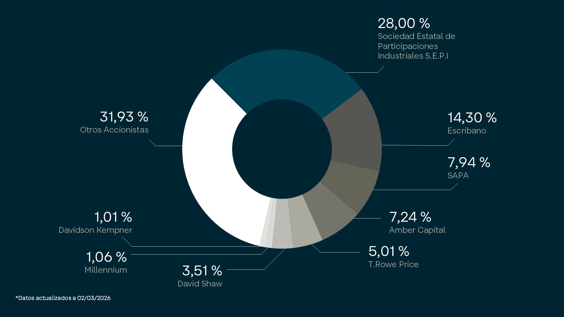 Icon IsotypeAccionistas e InversoresInformación económico-financiera e informe de sostenibilidadCuentas anuales e informe de sostenibilidadInforme público trimestralPeriodo medio de pagos a proveedoresDetalles conference call resultados 2025Gobierno corporativoÓrganos de gobierno y comité de direcciónEstatutos de la sociedadReglamentos internosPolíticas corporativasEstructura accionarialAutocarteraInformes anualesJunta General de AccionistasModificaciones estructuralesOtra información de interésComunicaciones a la CNMVInformación PrivilegiadaOtra Información RelevanteHechos Relevantes comunicados hasta el 8 de febrero de 2020Operaciones VinculadasResultados, publicaciones y eventosInforme público trimestralPresentaciones a inversoresAgenda del inversorInformación bursátilCotizaciónLa acción y su capital socialVolverCerrar