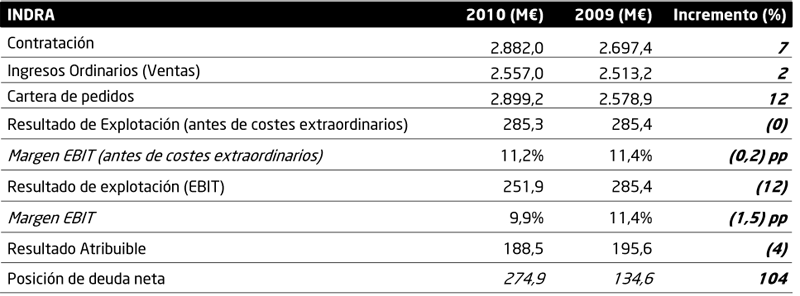 Indra cierra 2010 con un beneficio neto de 189 M€