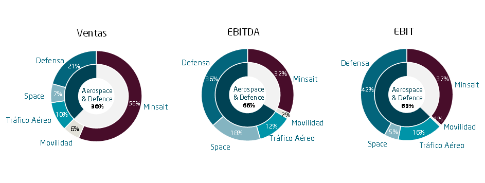 El margen EBITDA en los tres primeros meses del ejercicio se colocó en el 14,5% versus 10,7% en el mismo periodo del año anterior, con un crecimiento del EBITDA en términos absolutos del 55%. Esta mejora de márgenes se explica principalmente por el mayor aumento de ingresos de las divisiones de mayor margen, Defensa y ATM, así como por la contribución inorgánica de Hispasat e Hisdesat.
